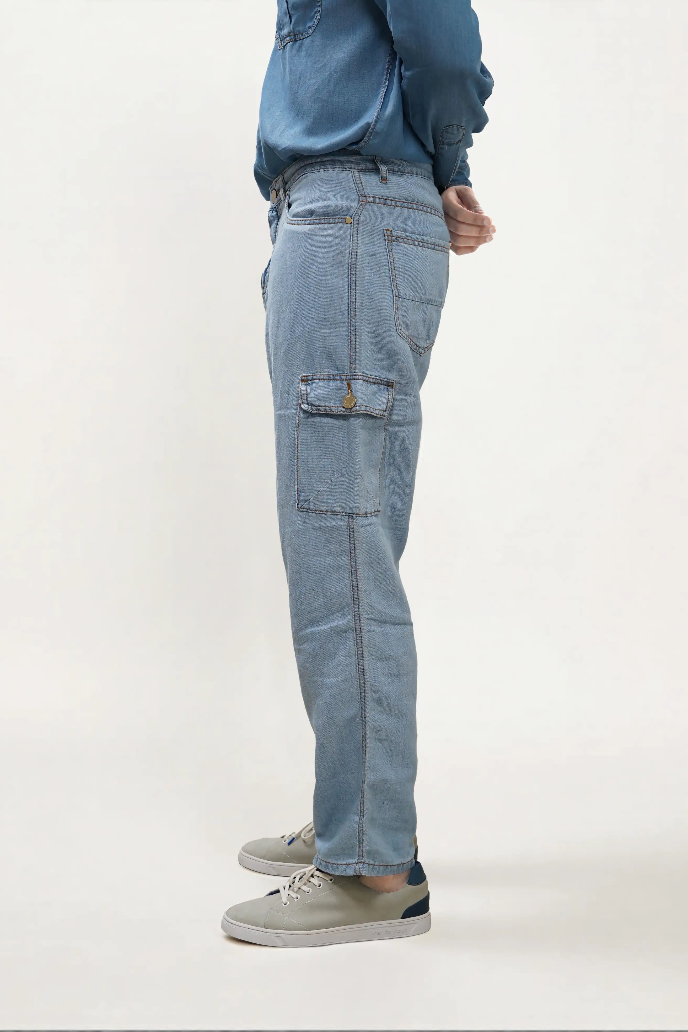 Utility with a modern update. These hemp blend cargo denims feature 7 spacious pockets, strong brass buttons, and YKK zips that last. Offered in Raw Indigo, Mid