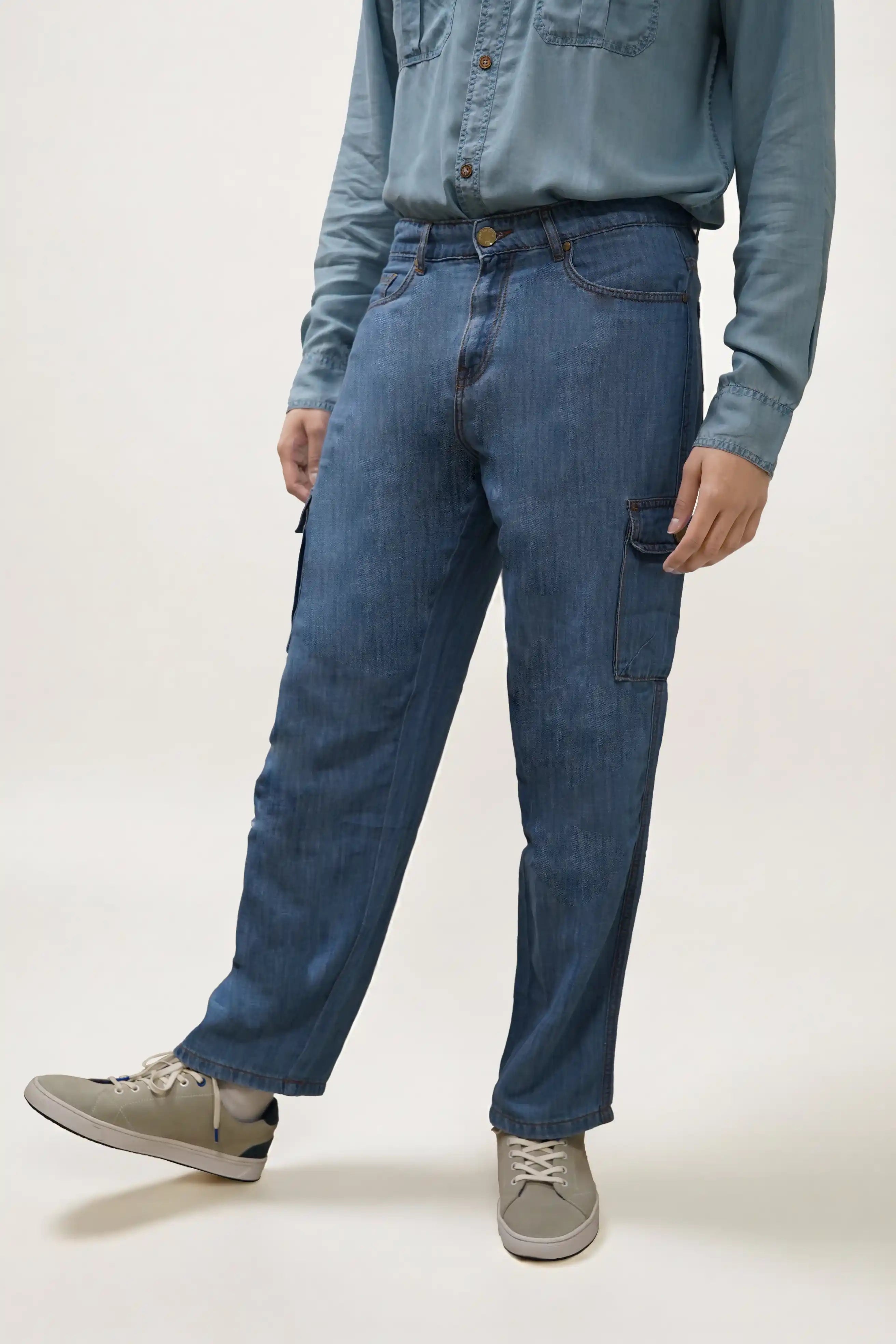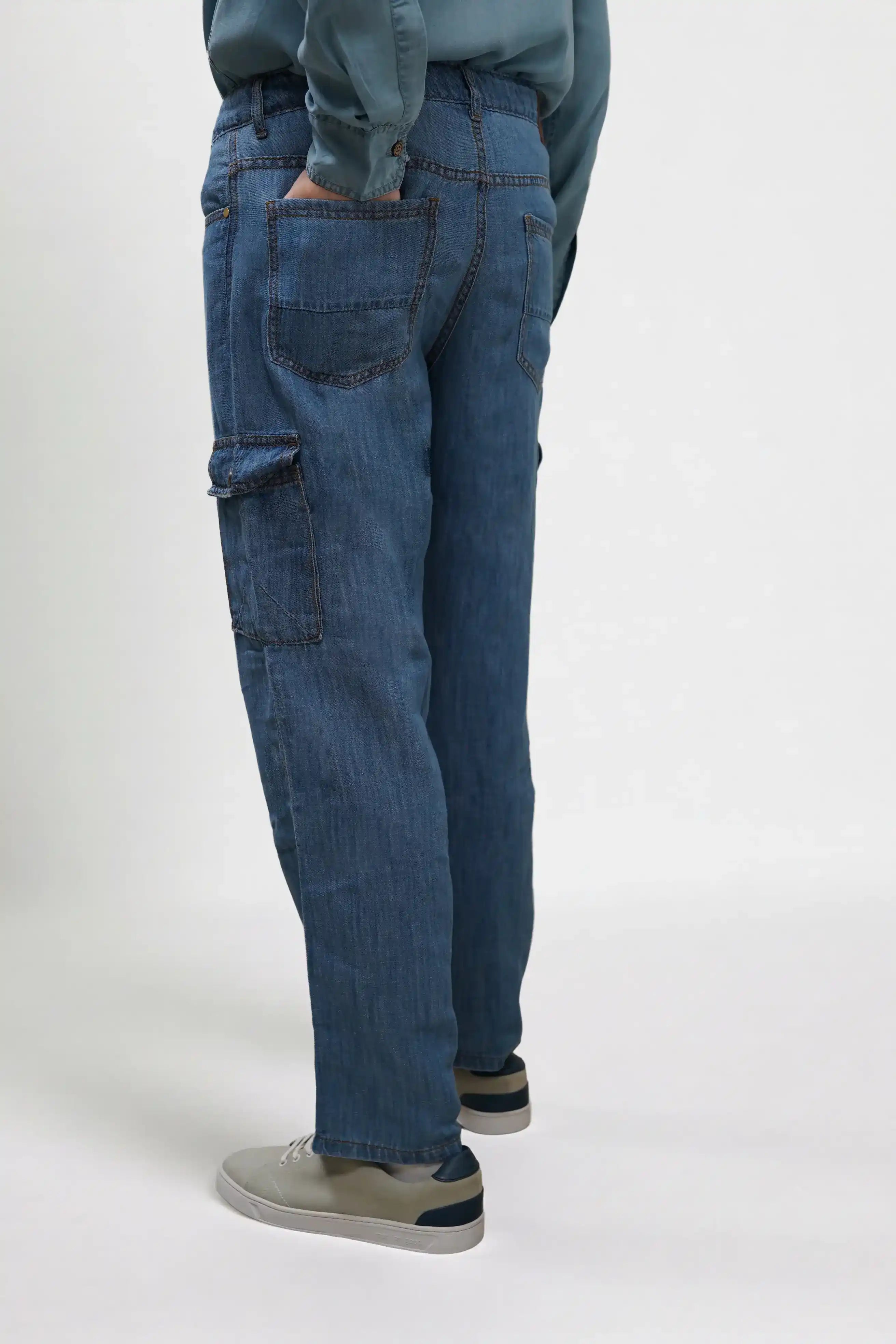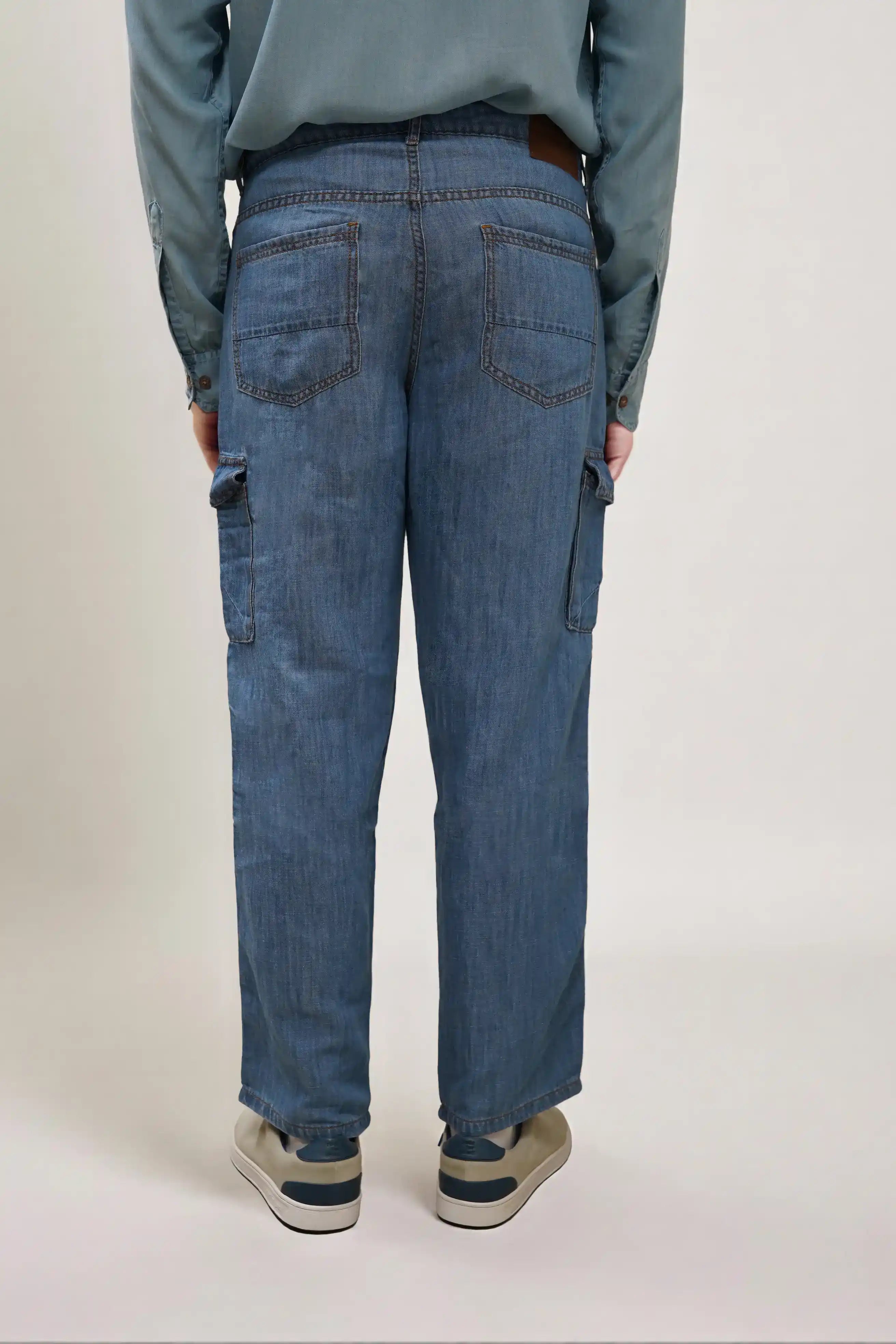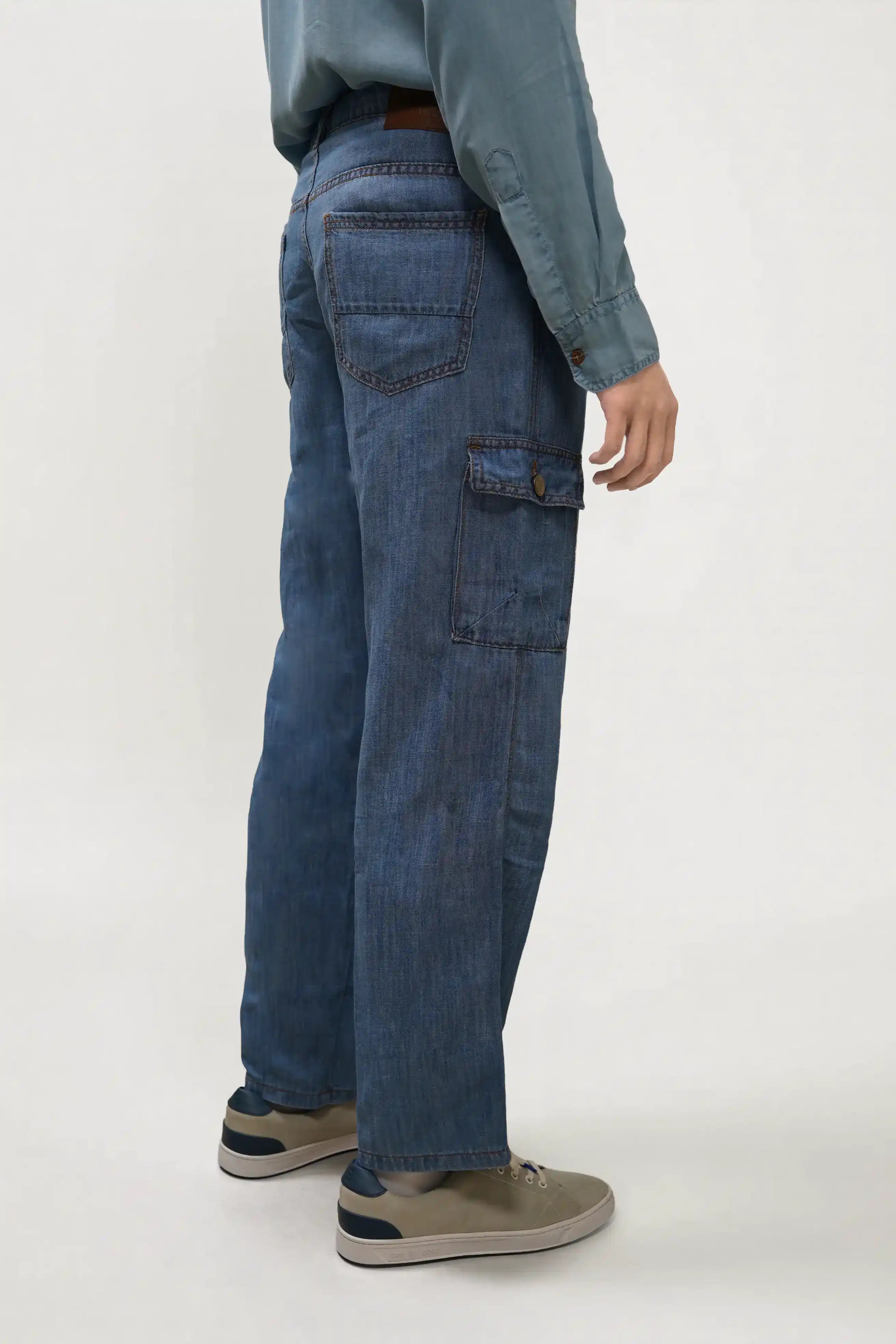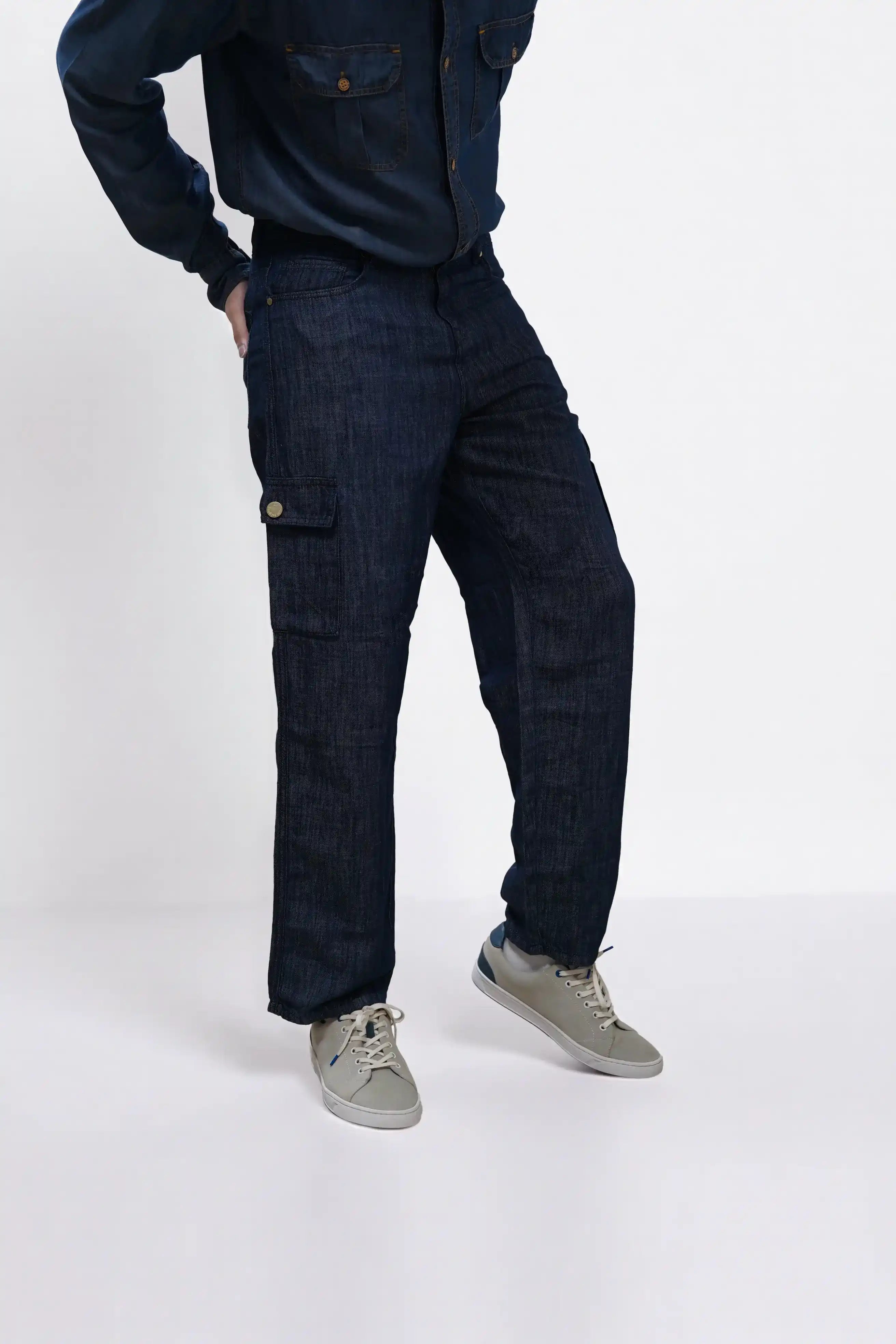 Discover the modern update of these hemp blend cargo denims with 7 spacious pockets, brass buttons, and lasting YKK zips. Choose from Raw Indigo, Mid Blue, or Ice Wash for a stylish and eco-conscious addition to your wardrobe.