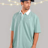 Roar Green Melange Organic Cotton Men's Oversize T-Shirt with Twill Collar