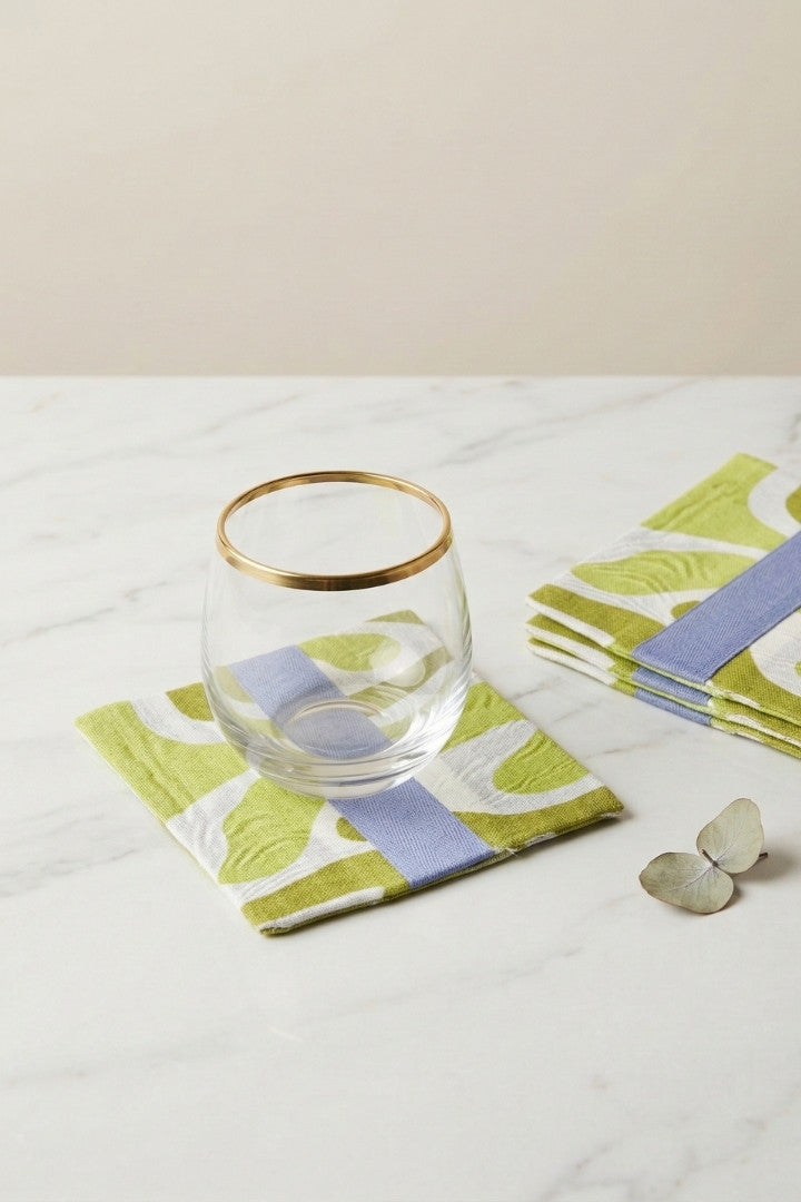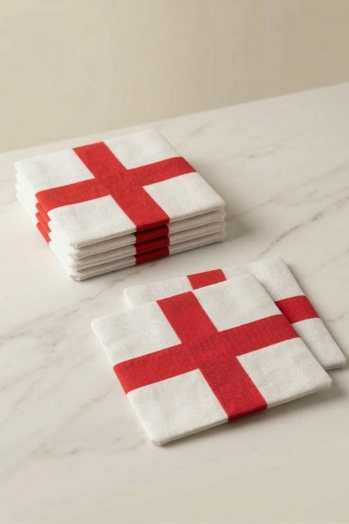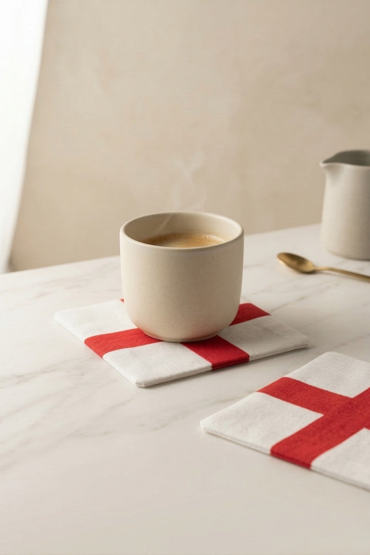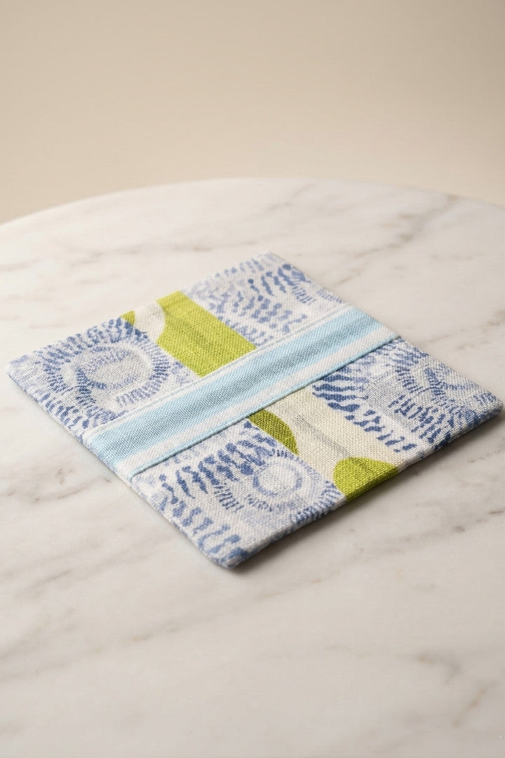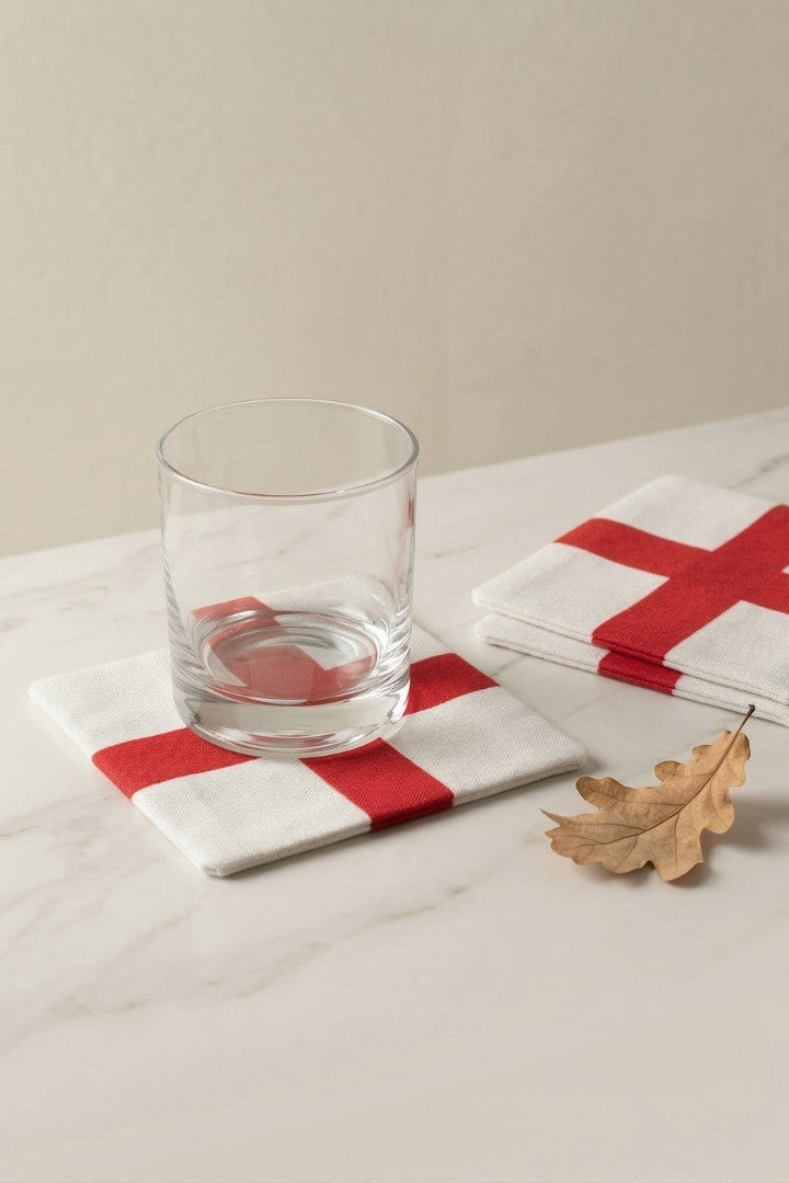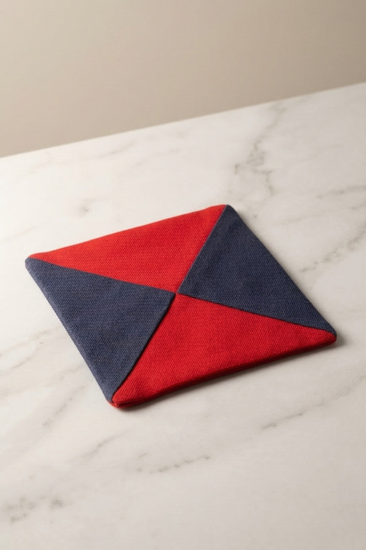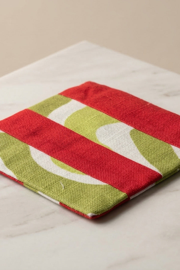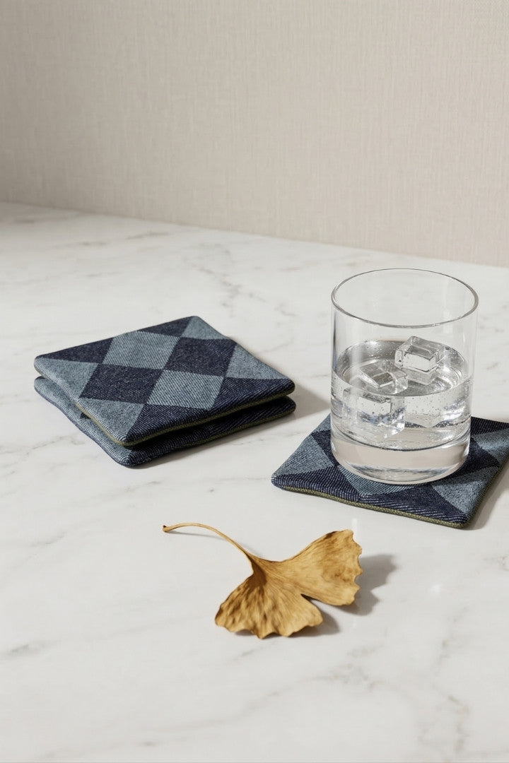 Fabric coasters made from eco-friendly materials. This reusable set of 6 protects your table from spills and heat while adding a sustainable touch.